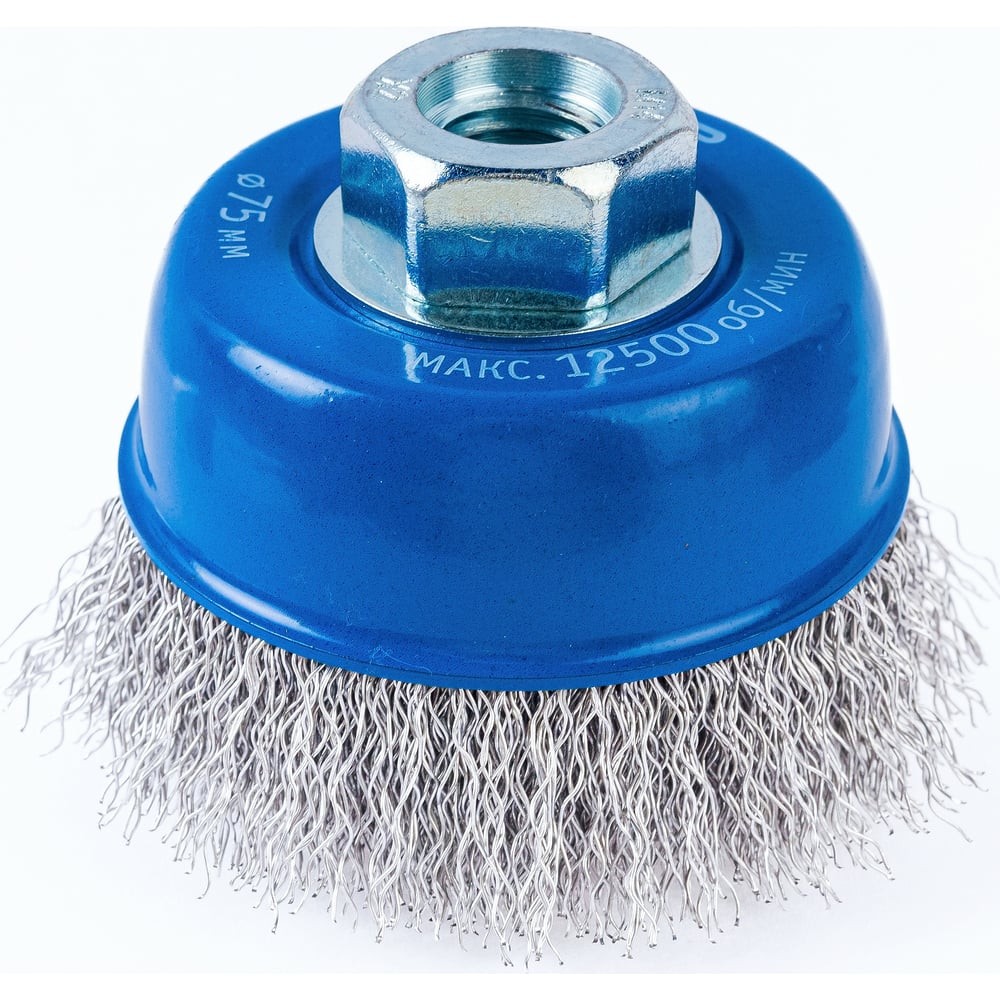 ЗУБР 75 мм, витая, стальная проволока 0.3 мм, чашечная щетка-крацовка для УШМ, Профессионал (35261-075)