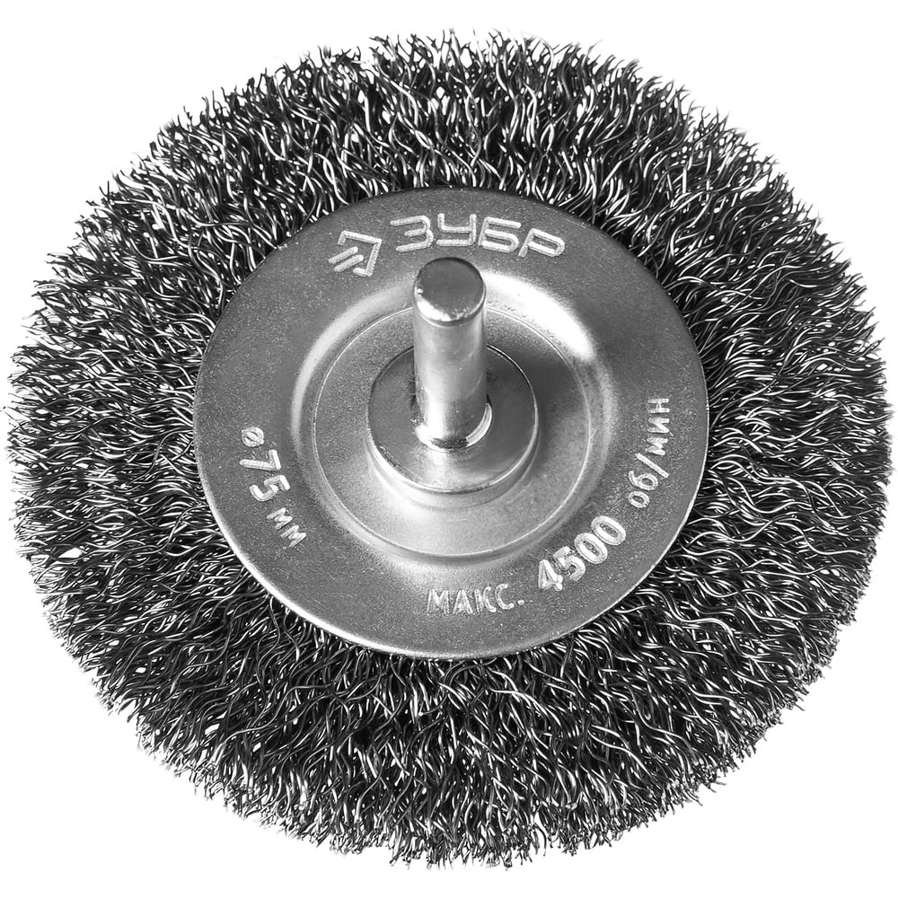 ЗУБР 75 мм, витая, стальная проволока 0.3 мм, щетка дисковая для дрели, Профессионал (35198-075)