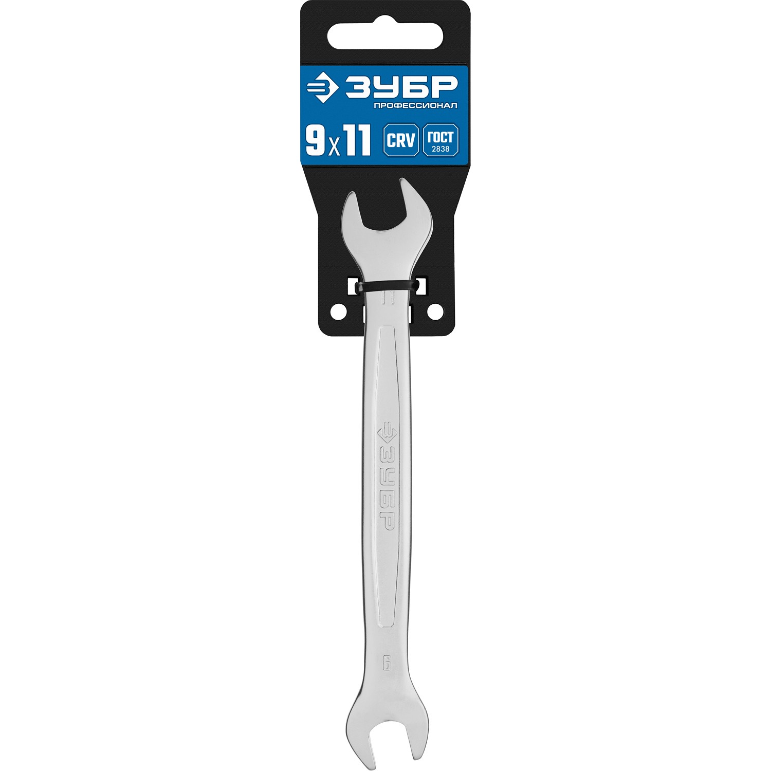 ЗУБР 9 х 11 мм, рожковый гаечный ключ, Профессионал (27010-09-11)
