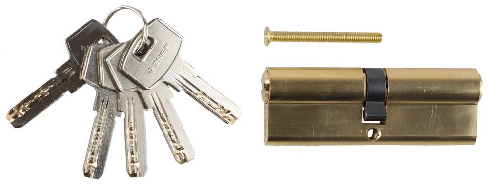 ЗУБР 90 мм, цвет латунь, 6-PIN, тип ключ-ключ, цилиндровый механизм (52105-90-1)