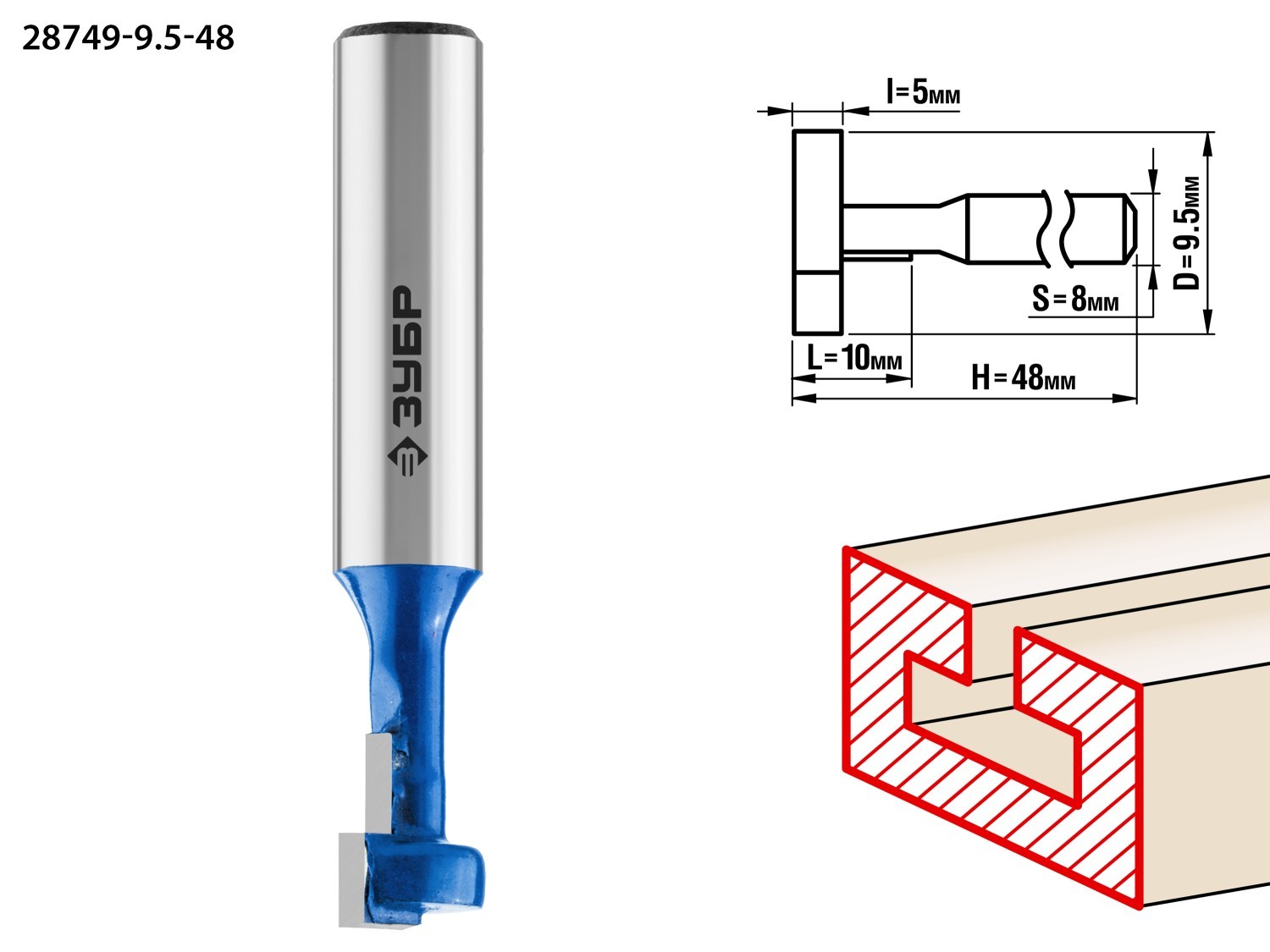 ЗУБР 9.5 x 10 мм, высота 5 мм, фреза пазовая Т-образная №1, Профессионал (28749-9.5-48)