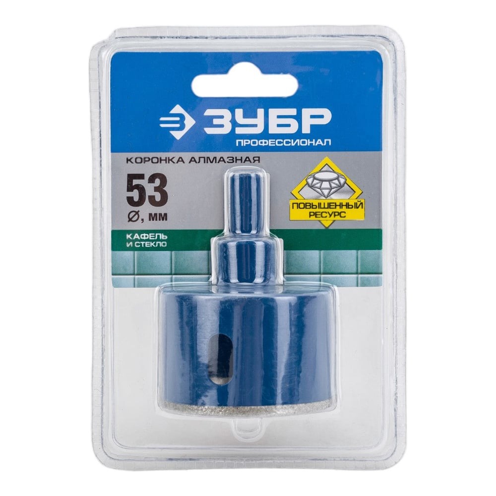 ЗУБР АГК, d 53 мм, (центр. сверло, трехгр. хвост, Р60), алмазная коронка, Профессионал (29850-53)