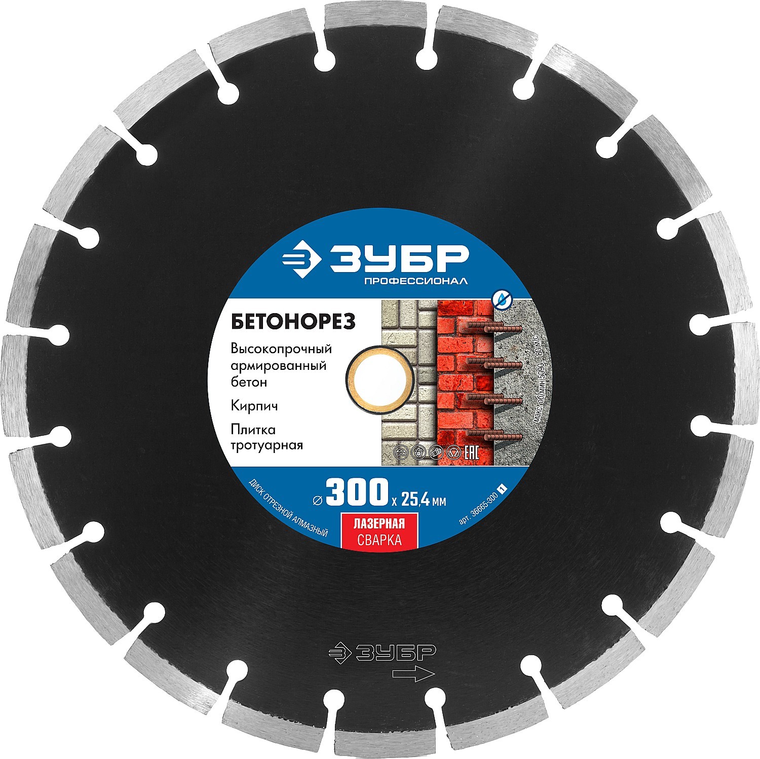 ЗУБР Бетонорез, 300 мм, (25.4/20 мм, 10 х 3.2 мм), сегментный алмазный диск, Профессионал (36665-300)