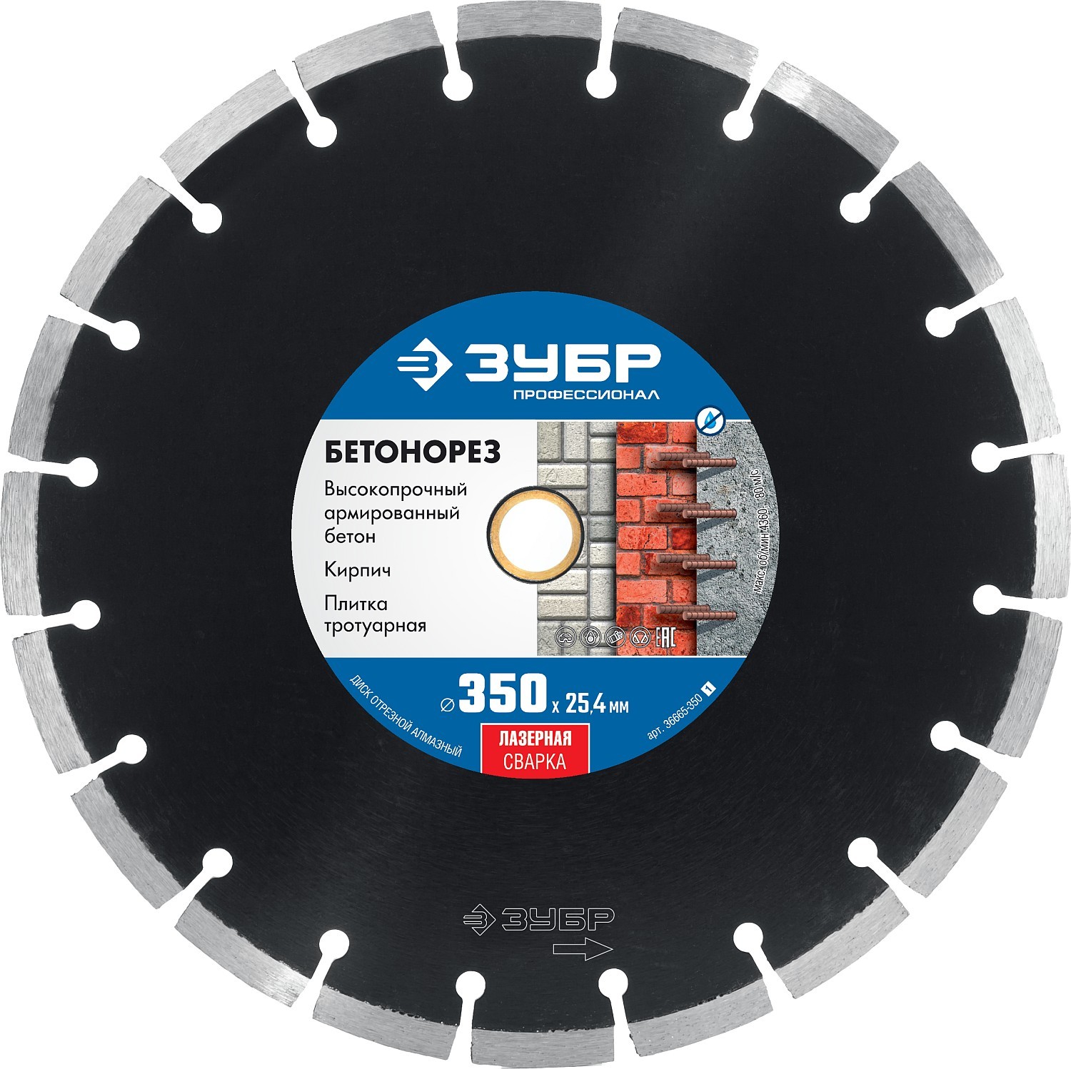 ЗУБР Бетонорез, 350 мм, (25.4/20 мм, 10 х 3.2 мм), сегментный алмазный диск, Профессионал (36665-350)