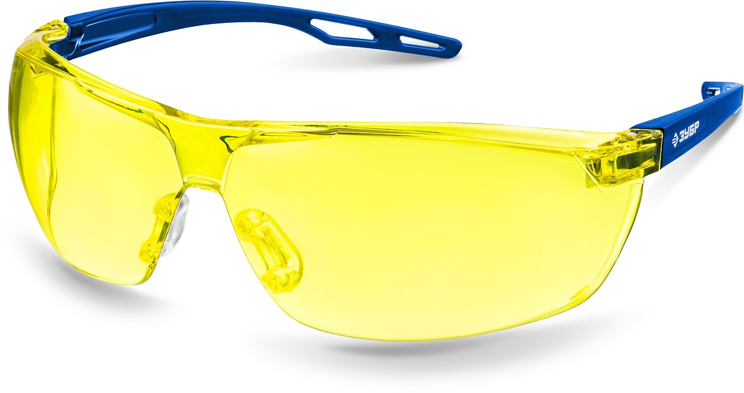 ЗУБР БОЛИД, открытого типа, жёлтые, сферические стёкла устойчивые к запотеванию, защитные очки, Профессионал (110486)
