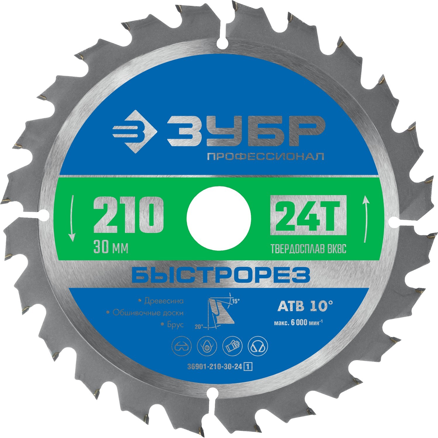 ЗУБР Быстрорез, 210 x 30 мм, 24Т, пильный диск по дереву, Профессионал (36901-210-30-24)