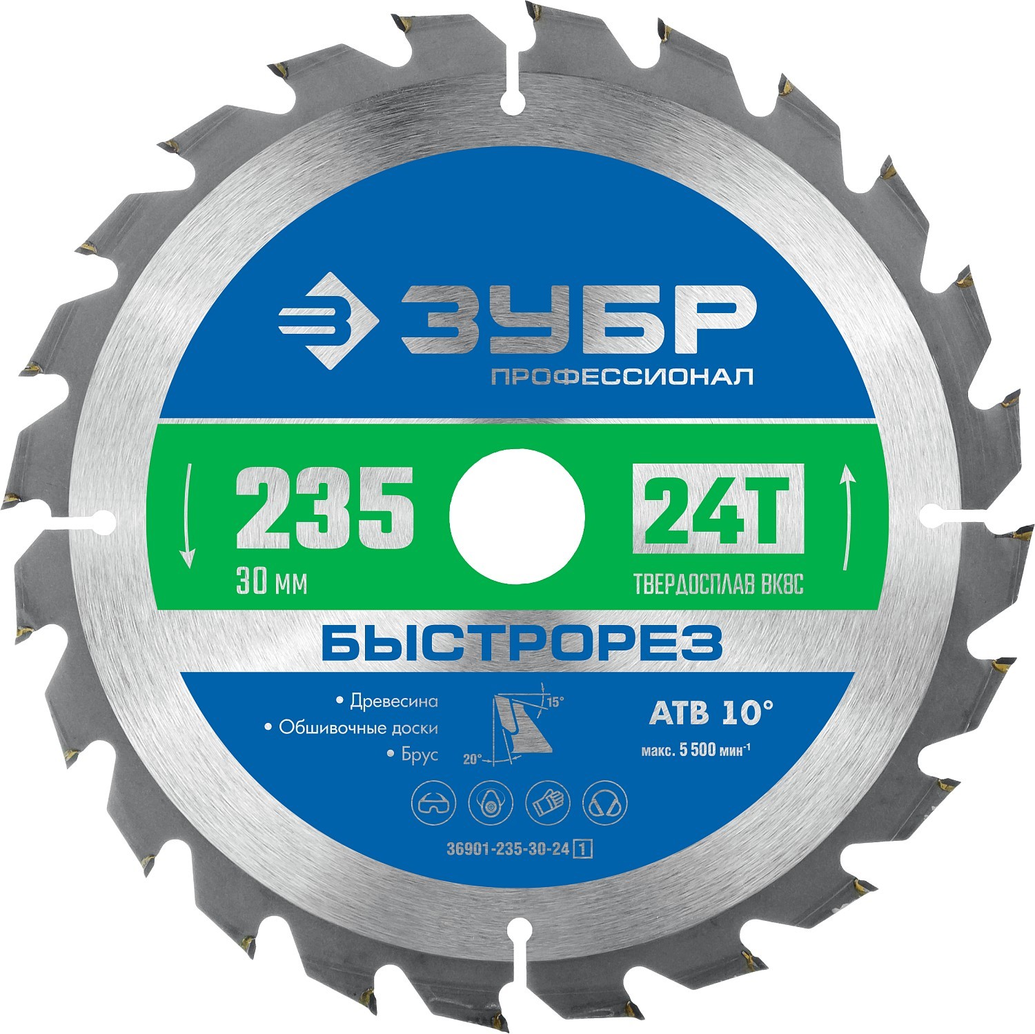 ЗУБР Быстрорез, 235 x 30 мм, 24Т, пильный диск по дереву, Профессионал (36901-235-30-24)