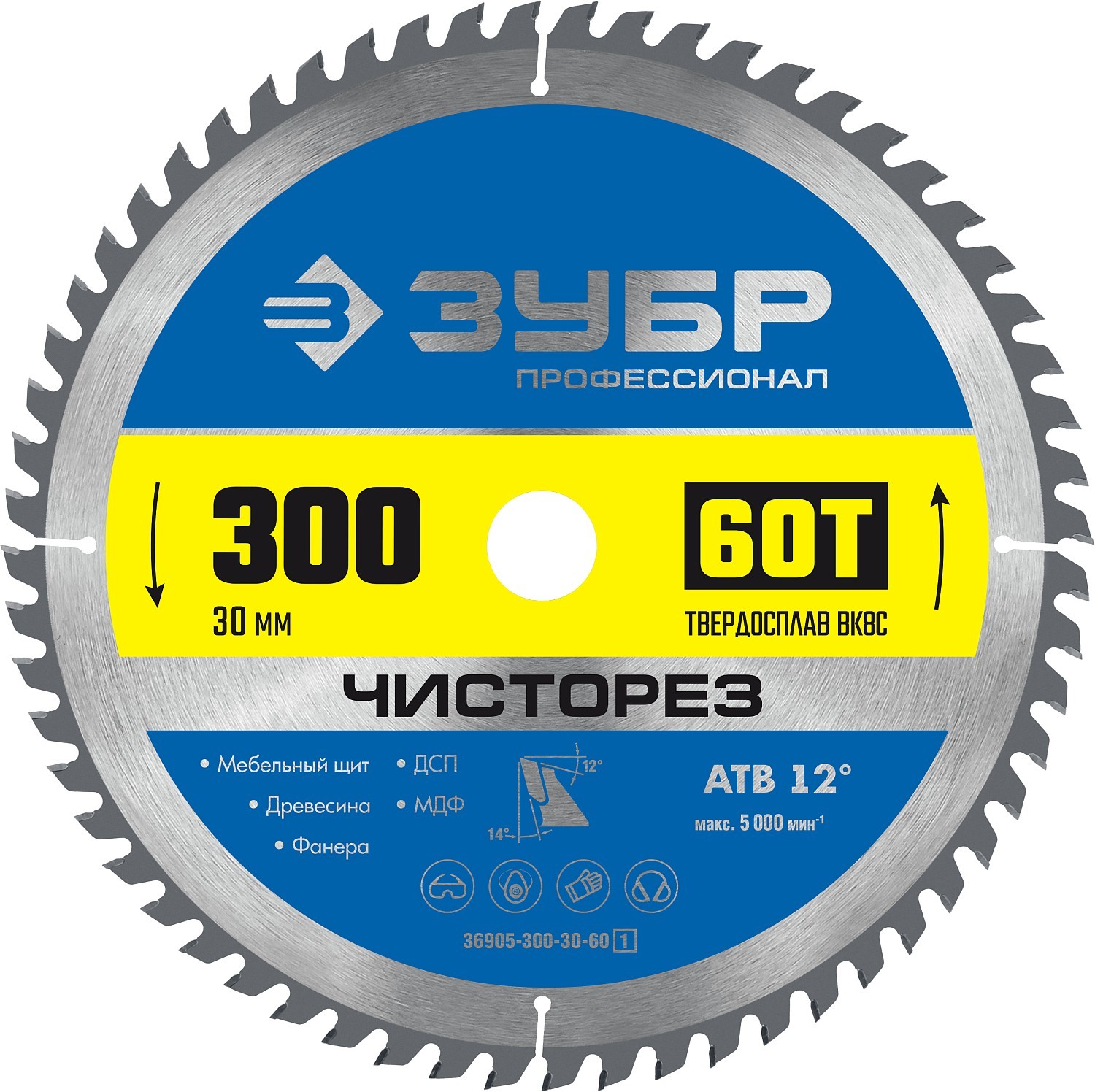ЗУБР Чисторез, 300 x 30 мм, 60Т, пильный диск по дереву, Профессионал (36905-300-30-60)