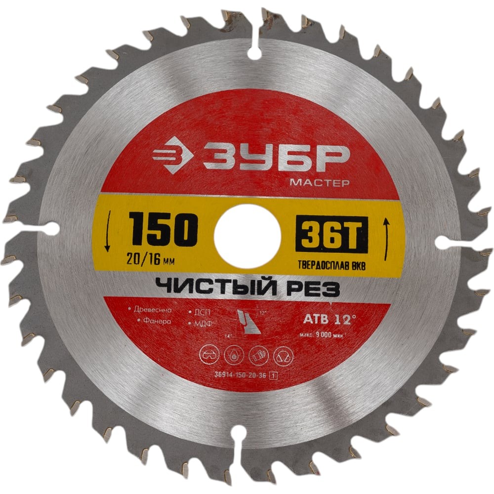 ЗУБР Чистый рез, 150 x 20/16 мм, 36T, пильный диск по дереву (36914-150-20-36)