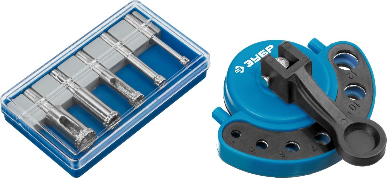 ЗУБР (d 4, 6, 8, 10, 12 мм, Р60), набор алмазных трубчатых сверл с кондуктором, Профессионал (29851-H6)