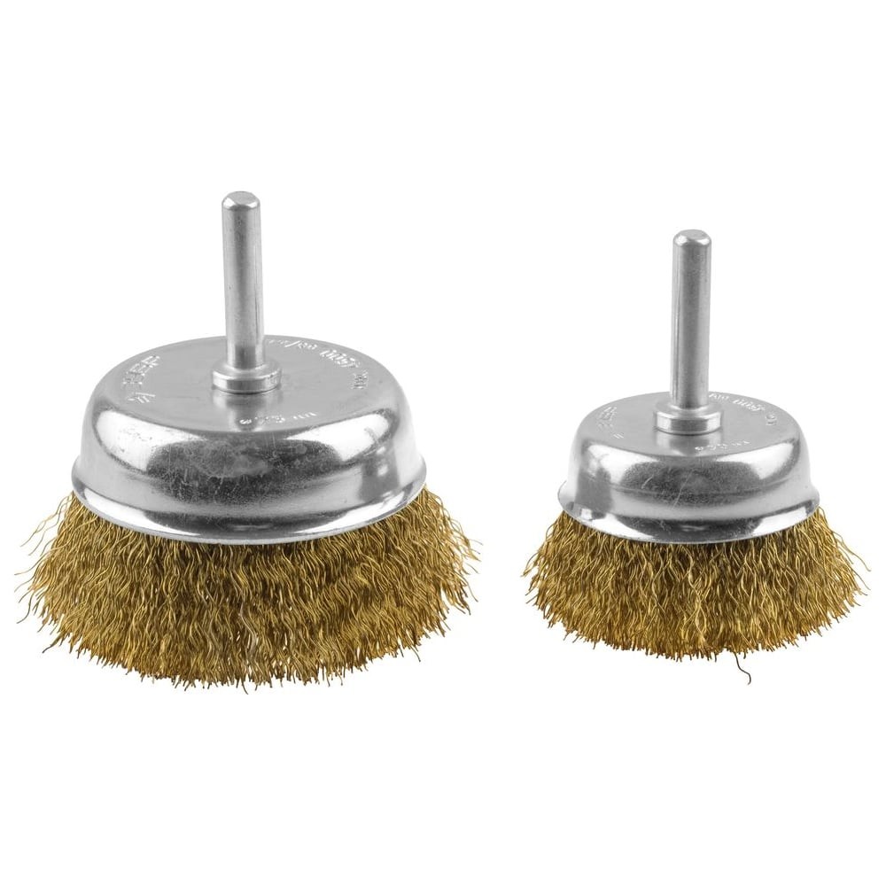 ЗУБР d 50/75 мм, витая стальная латунированная проволока 0.3 мм, набор чашечных щеток-крацовок для дрели, Профессионал (3531-H2)