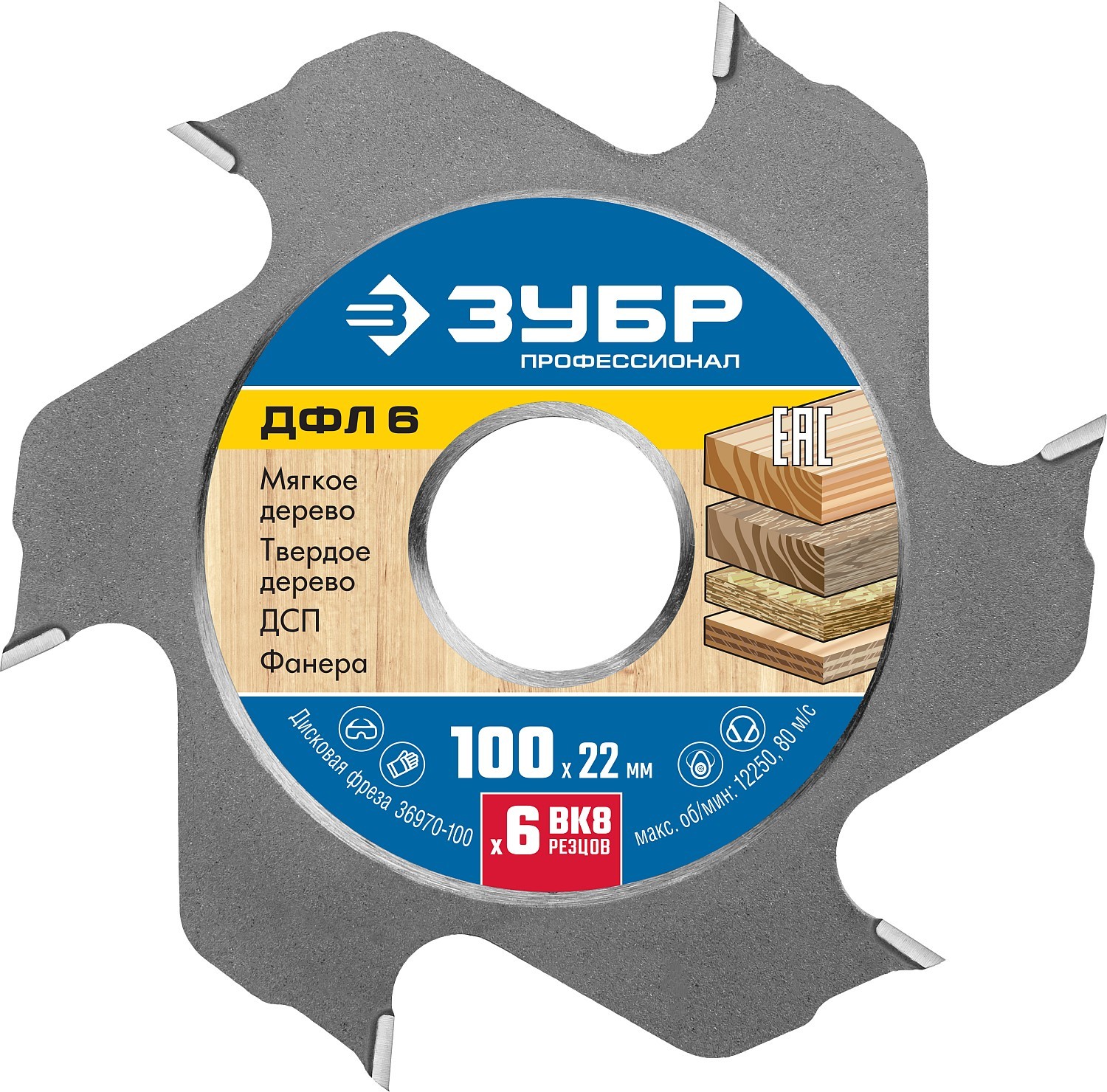 ЗУБР ДФЛ6, 100 х 22 мм, 6 резцов, дисковая фреза для ламельного фрезера, Профессионал (36970-100)