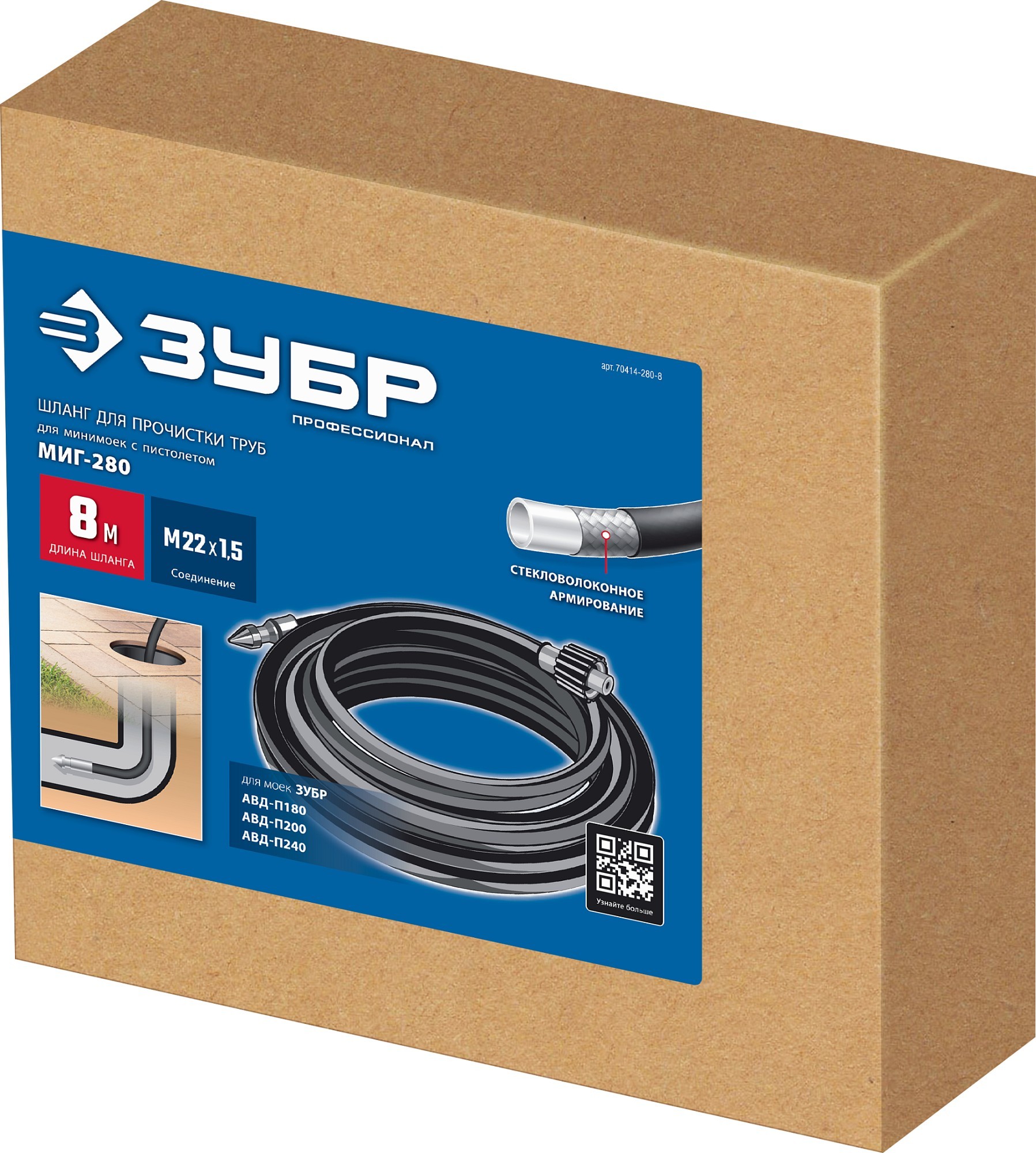 ЗУБР для пистолета МИГ-280, 8 м, шланг для прочистки труб (70414-280-8)