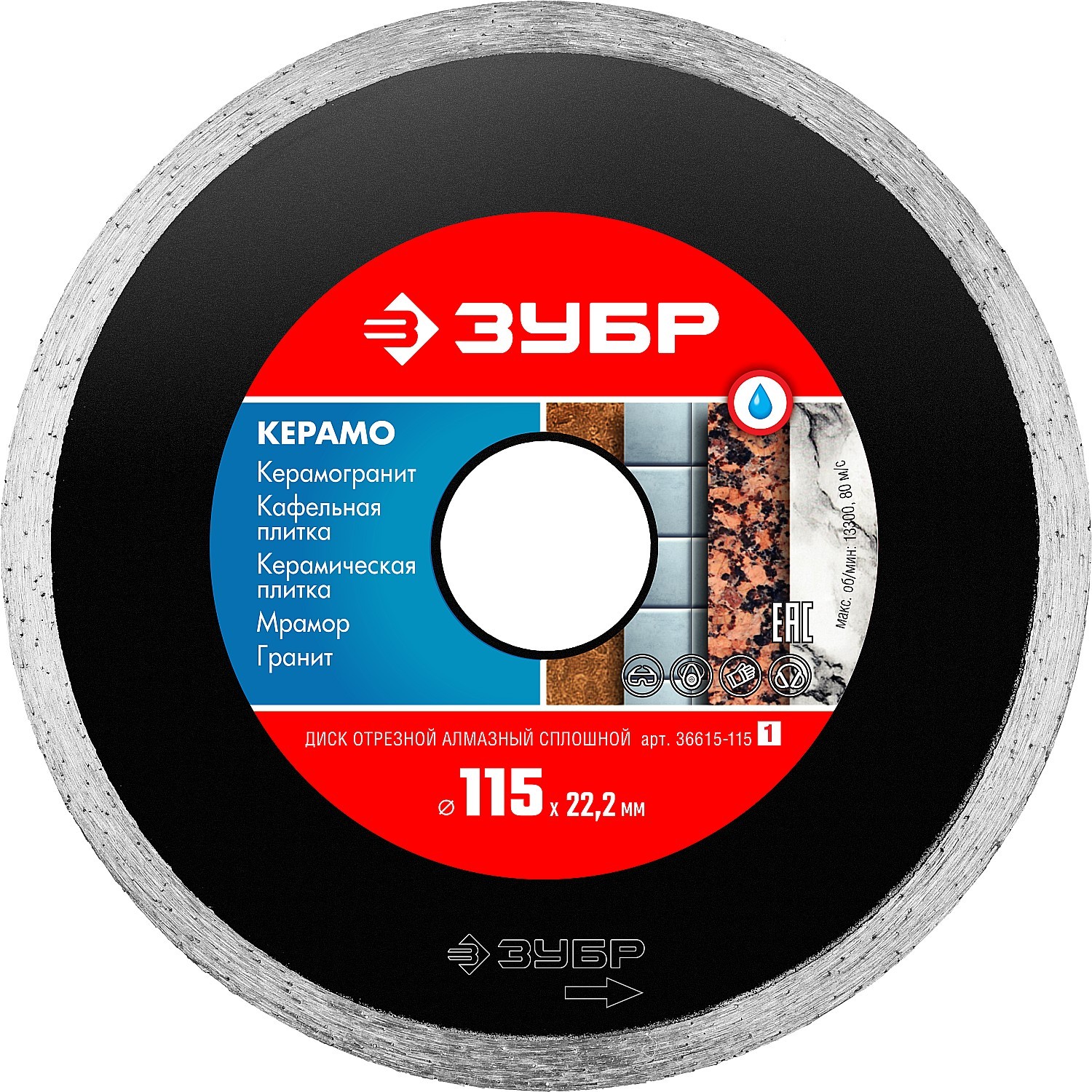 ЗУБР Керамо-22, d 115 мм, (22.2 мм, 5 х 1.9 мм), сплошной алмазный диск (36615-115)
