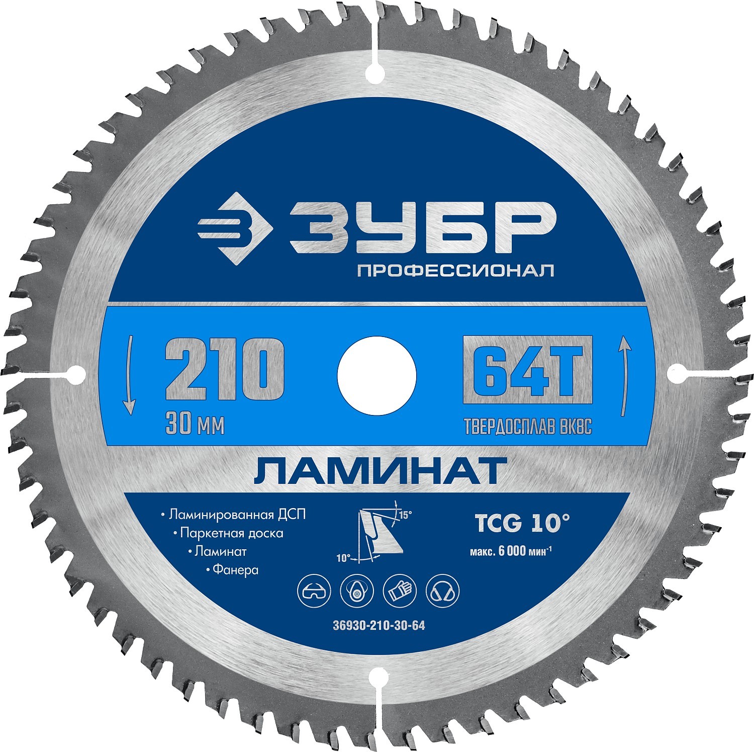 ЗУБР Ламинат, 210 х 30 мм, 64Т, пильный диск по ламинату, Профессионал (36930-210-30-64)