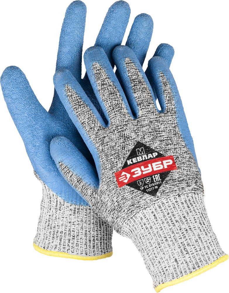 ЗУБР M, перчатки для защиты от порезов с рельефным латексным покрытием (11277-M)