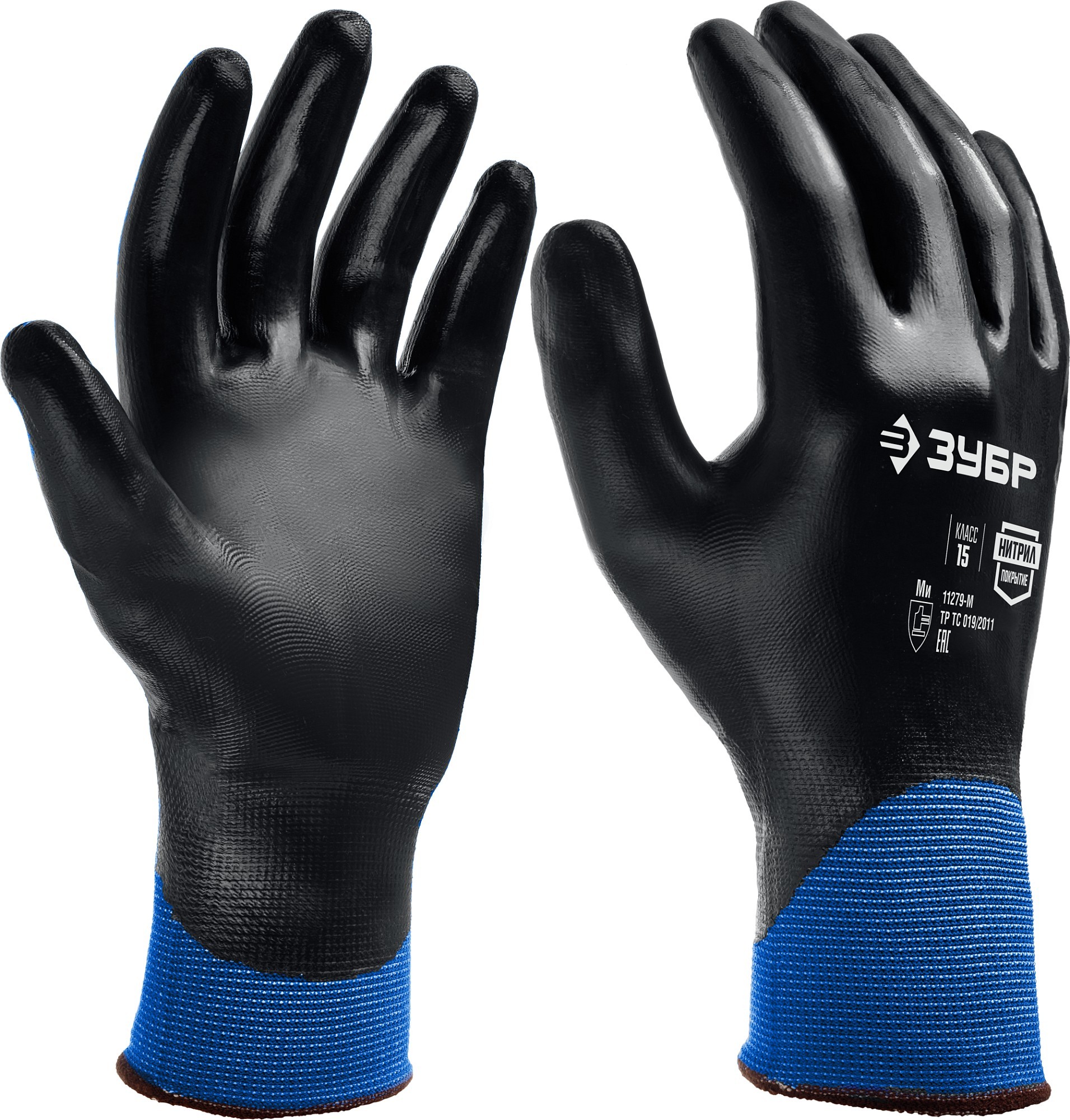ЗУБР МЕХАНИК+, L (9), перчатки с полным нитриловым обливом, маслобензостойкие, 15 класс, Профессионал (11279-L)