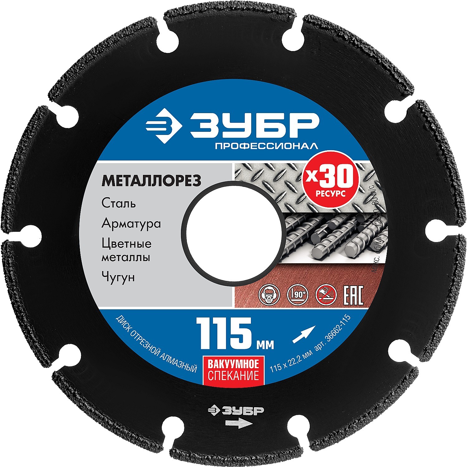ЗУБР МЕТАЛЛОРЕЗ 115 мм, вакуумное спекание, алмазный диск по металлу, Профессионал (36662-115)