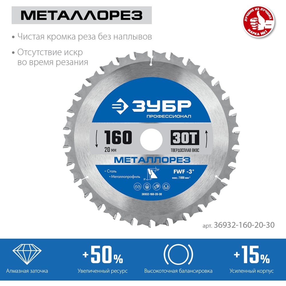 ЗУБР Металлорез, 160 х 20 мм, 30Т, пильный диск по металлу и металлопрофилю, Профессионал (36932-160-20-30)
