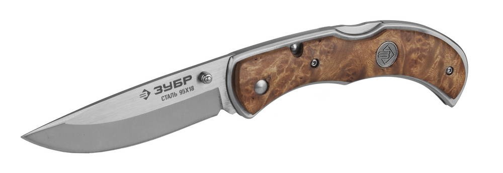 ЗУБР Норманн, 220 мм, лезвие 95 мм, рукоятка с деревянными накладками, складной нож (47714)