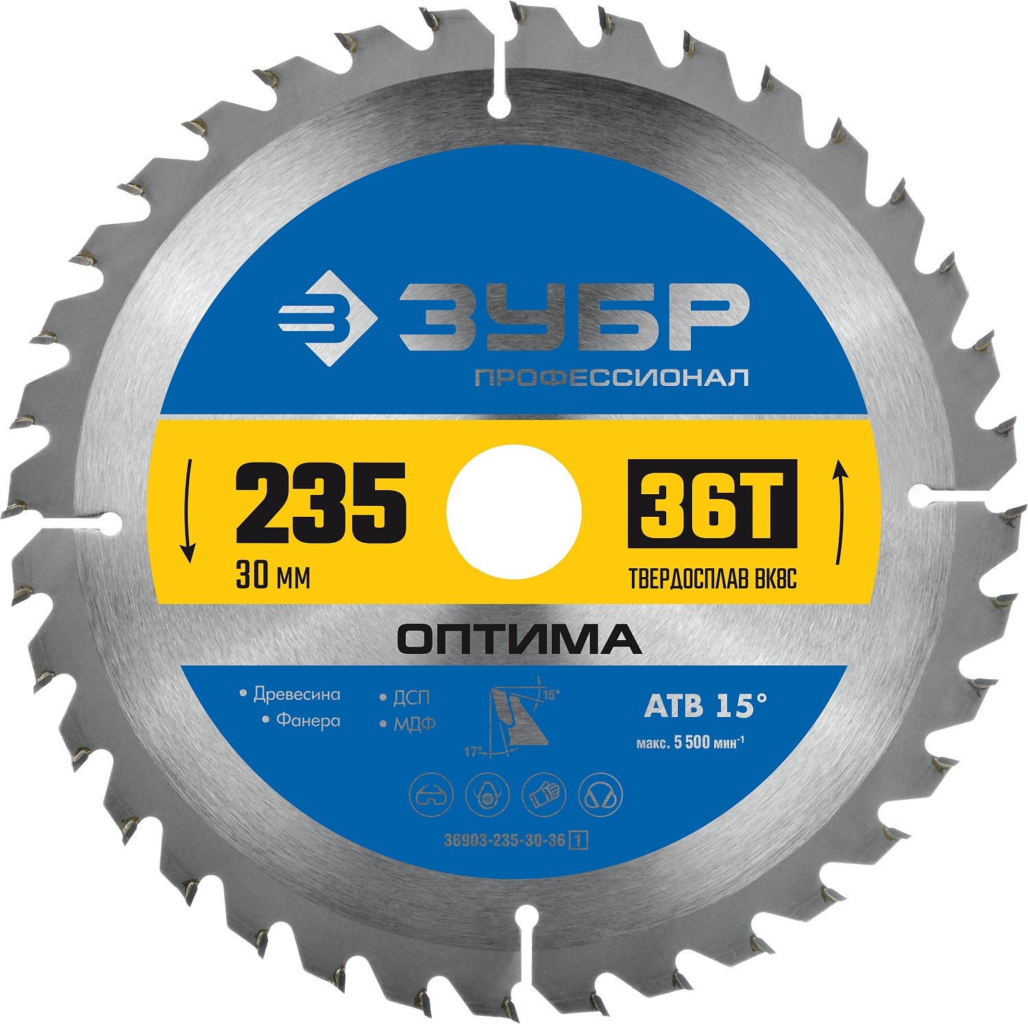 ЗУБР Оптима, 235 x 30 мм, 36Т, пильный диск по дереву, Профессионал (36903-235-30-36)