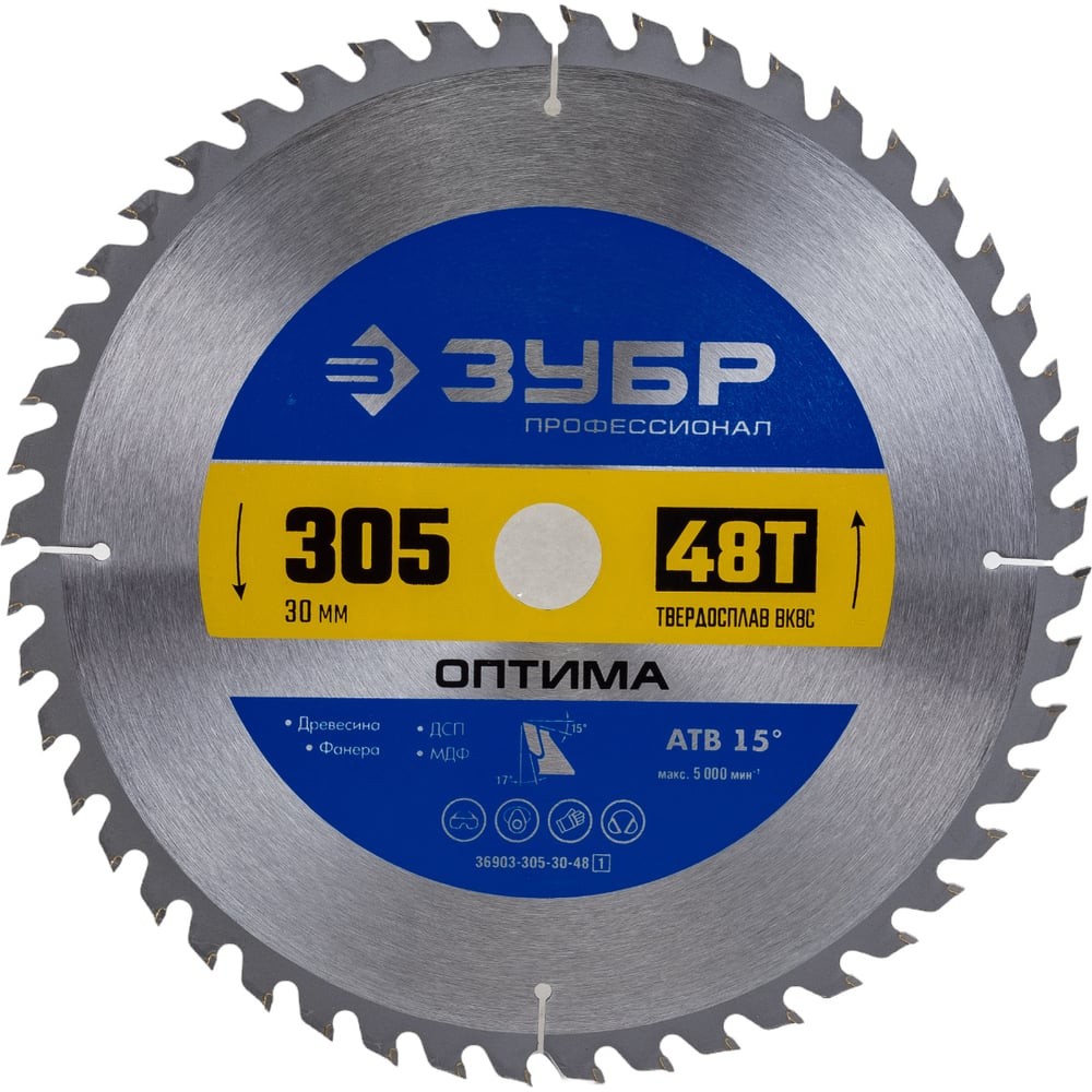 ЗУБР Оптима, 305 x 30 мм, 48Т, пильный диск по дереву, Профессионал (36903-305-30-48)
