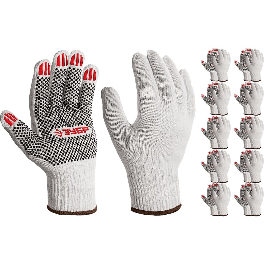 ЗУБР ОПТИМА, XL (10), х/б перчатки с ПВХ покрытием (точка), 10 класс, 10 пар (11440-XL10)