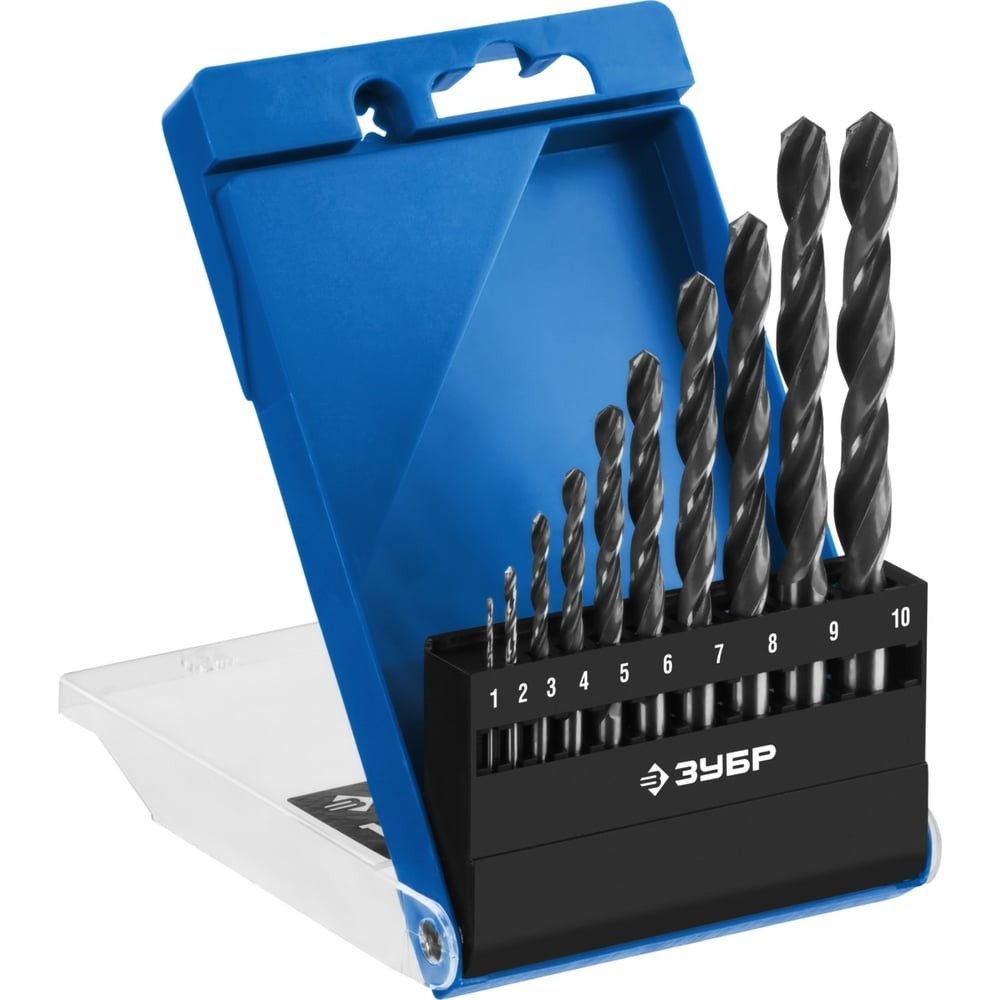 ЗУБР ПРОФ-В, 10 шт, (1-10 мм), сталь Р6М5, класс В, набор сверл по металлу, Профессионал (29621-H10)