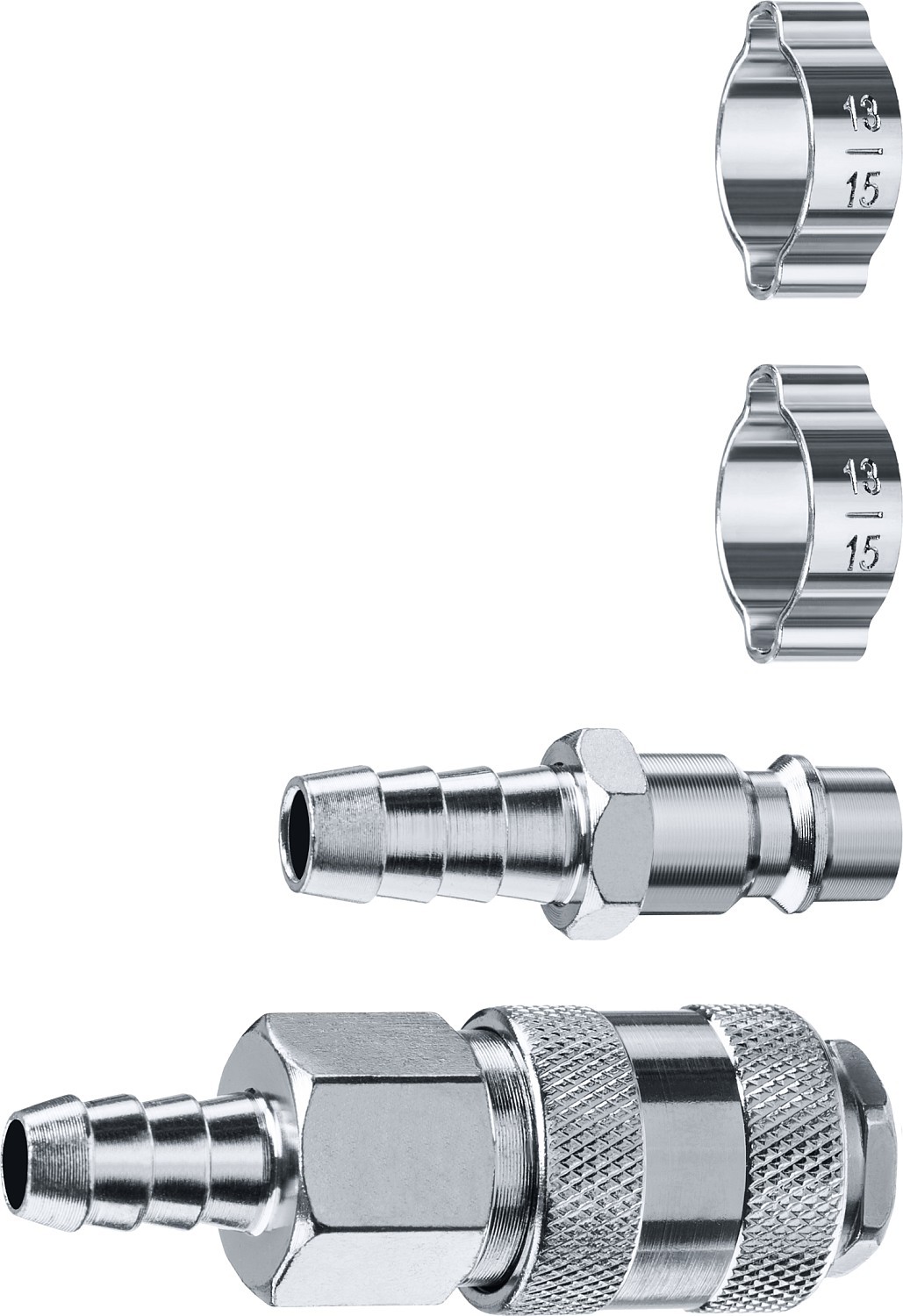 ЗУБР (штуцер _елочка_, 10 мм - рапид муфта) + (рапид штуцер-штуцер _елочка_, 10 мм) + (обжимные хомуты 2 шт), набор, Профессионал (64920-10-H)