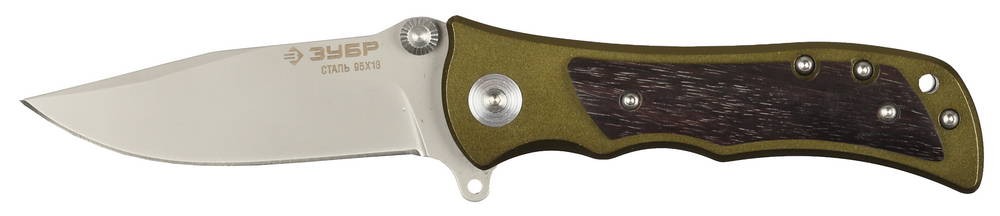 ЗУБР Следопыт, 200 мм, лезвие 95 мм, металлическая рукоятка с деревянными вставками, складной нож (47713)