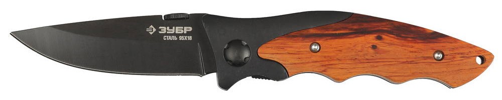 ЗУБР Стрелец, 185 мм, лезвие 80 мм, металлическая рукоятка, с деревянными вставками, складной нож (47711)