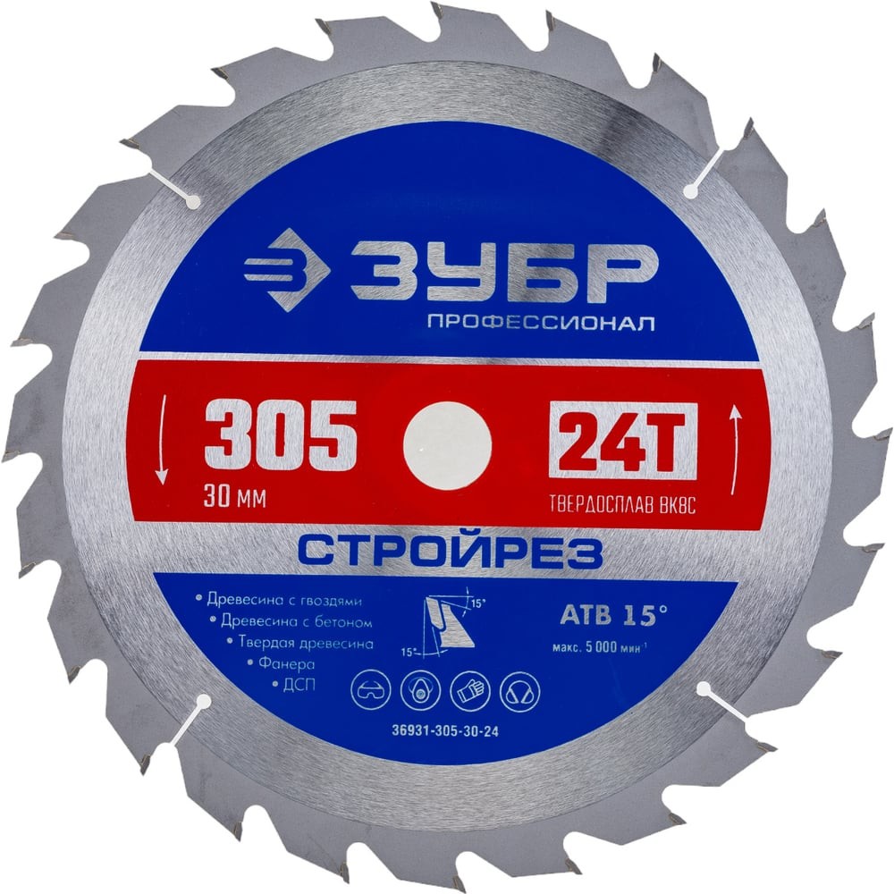 ЗУБР Стройрез, 305 х 30 мм, 24Т, пильный диск по строительной древесине, Профессионал (36931-305-30-24)
