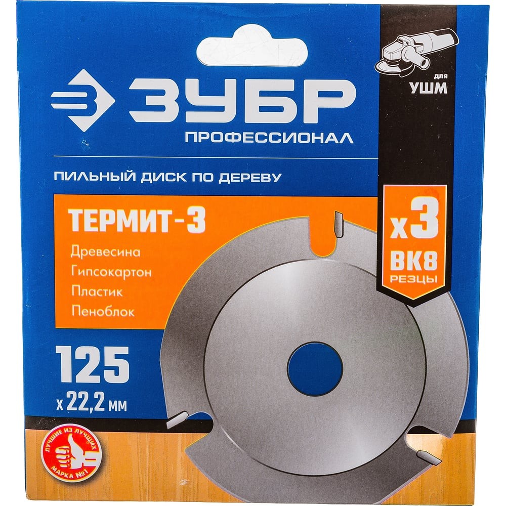 ЗУБР Термит-3, 125 х 22.2 мм, 3 резца, для УШМ, усиленный, пильный диск по дереву, Профессионал (36857-125)