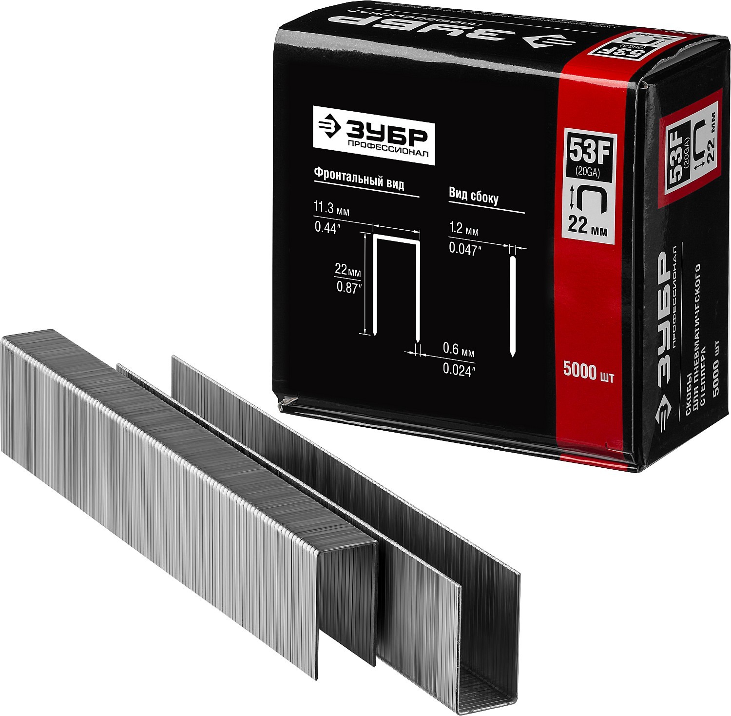ЗУБР тип 20GA (53F/D/056) 22 мм, 5000 шт, скобы для степлера, Профессионал (31950-22)