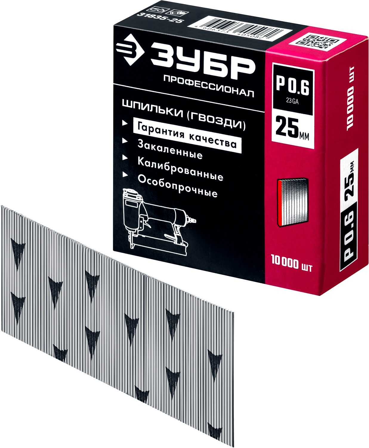 ЗУБР тип 23GA (P0.6) 25 мм, 10 000 шт, шпильки для нейлера, Профессионал (31835-25)