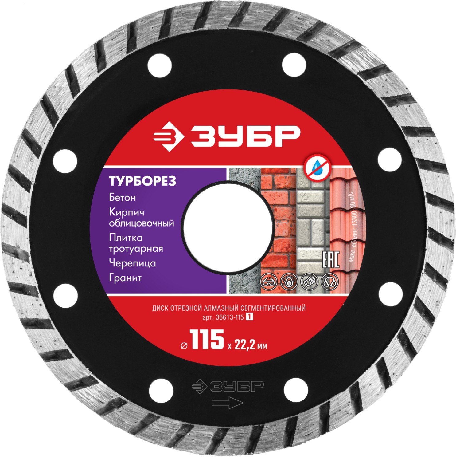 ЗУБР Турборез, 115 мм, (22.2 мм, 7 х 2.4 мм), сегментированный алмазный диск (36613-115)