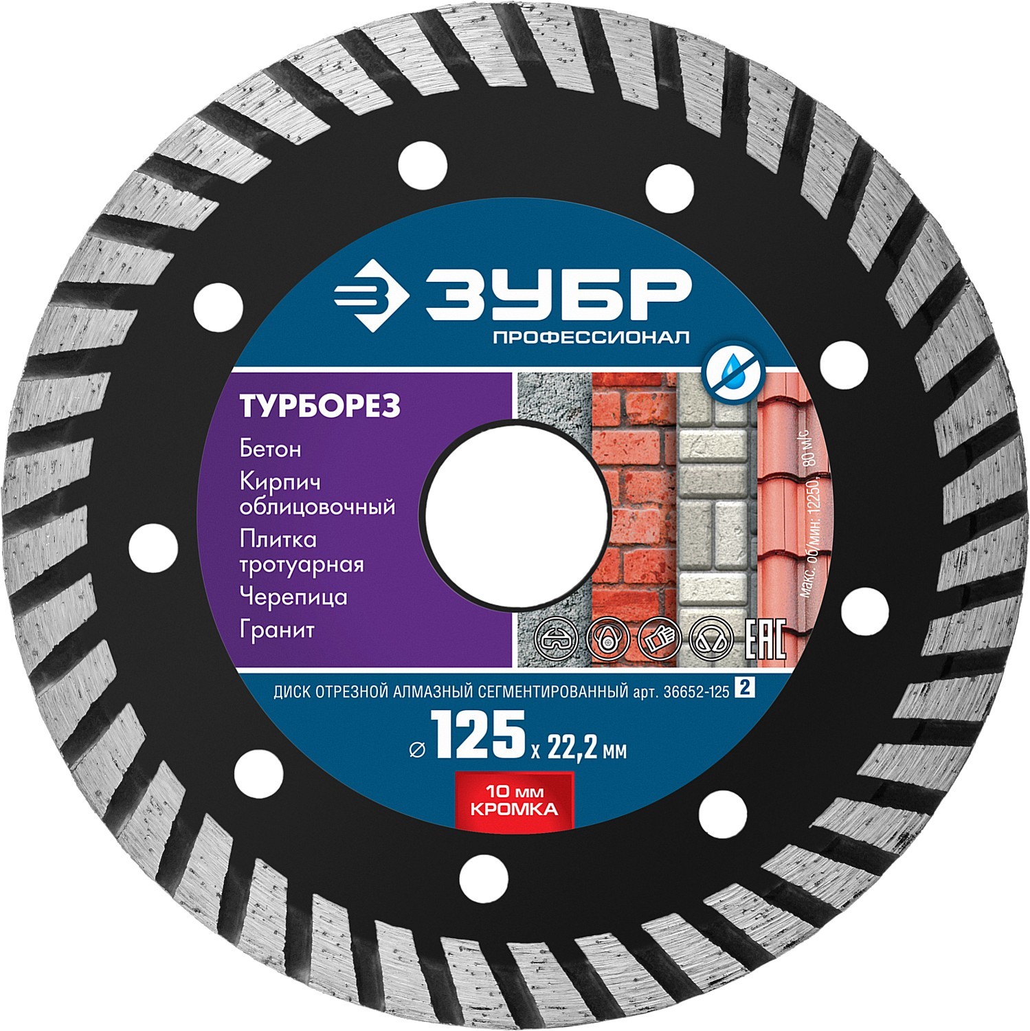 ЗУБР Турборез, 125 мм, (22.2 мм, 10 х 2.4 мм), сегментированный алмазный диск, Профессионал (36652-125)