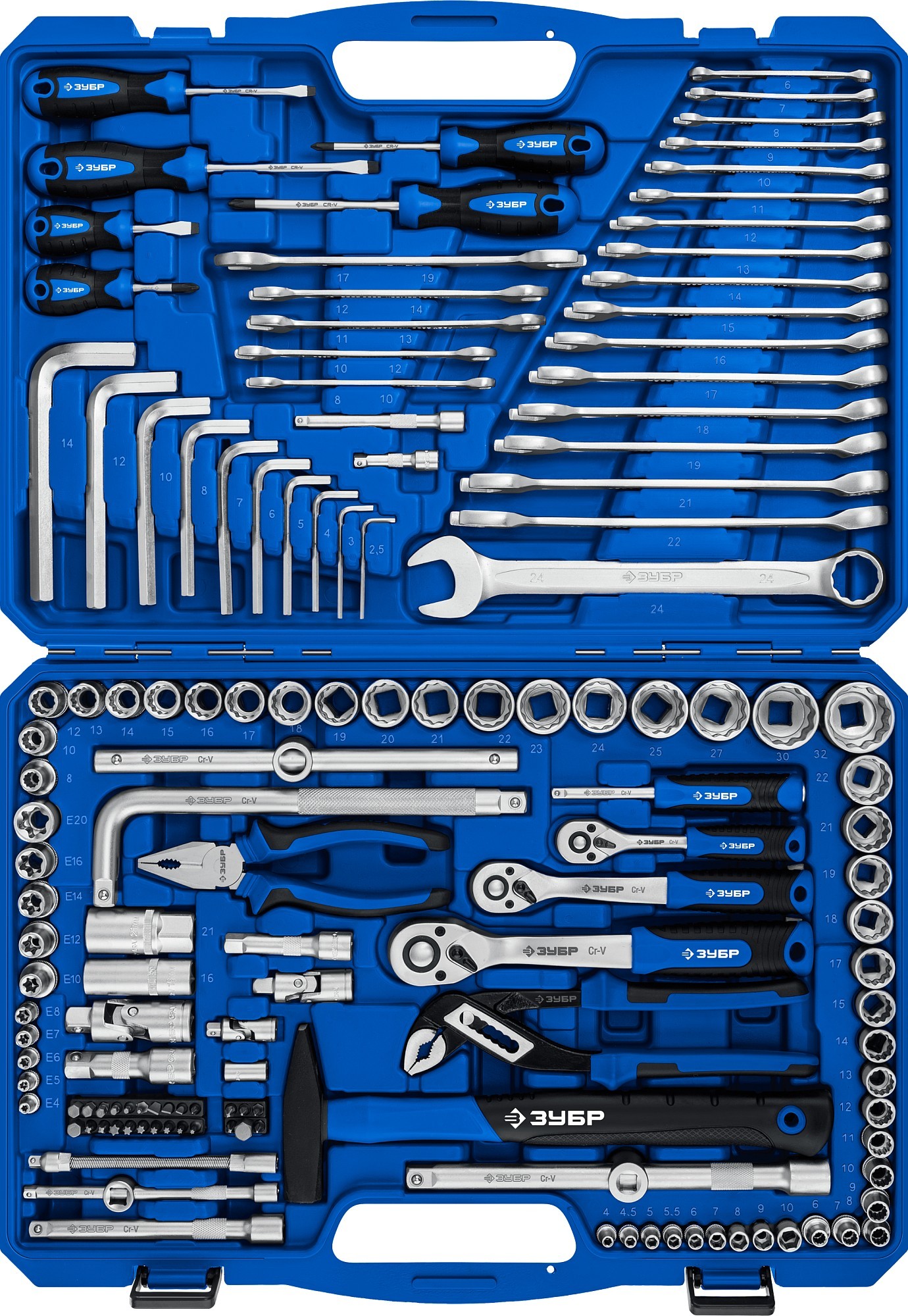 ЗУБР Универсал-142, 142 предм., (1/2_+ 3/8_+ 1/4_), универсальный набор инструмента, Профессионал (27670-H142)
