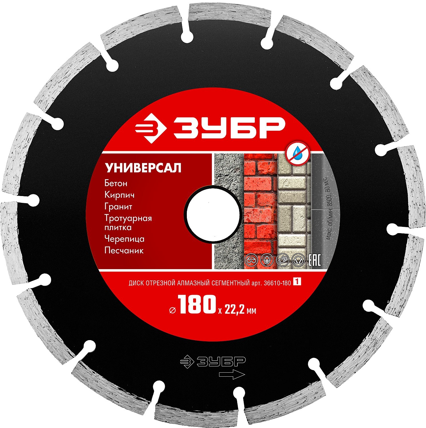 ЗУБР Универсал, 180 мм, (22.2 мм, 7 х 2.2 мм), сегментный алмазный диск (36610-180)