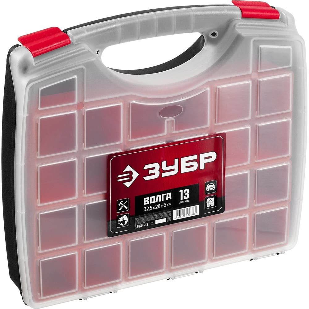 ЗУБР ВОЛГА-13, 325 х 280 х 60 мм, пластиковый органайзер с 13 съемными лотками (38034-13)
