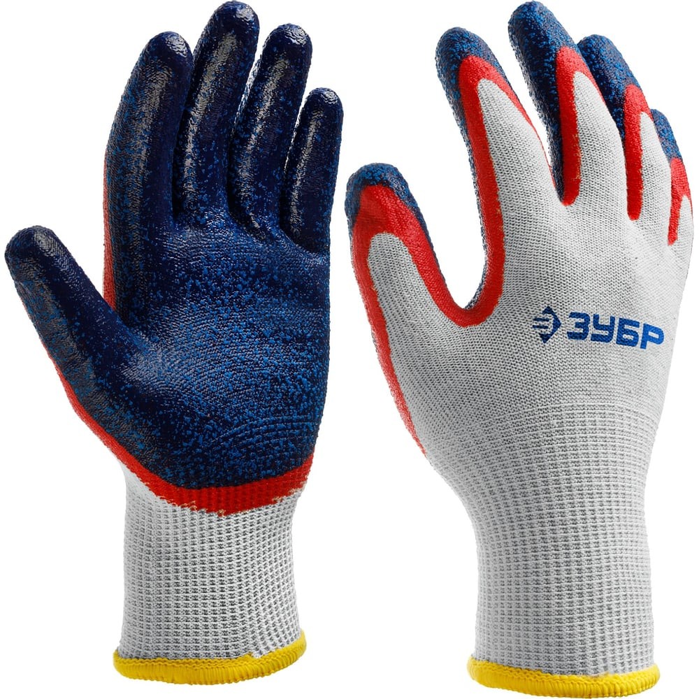 ЗУБР ЗАХВАТ-2 S-M, х/б перчатки с двойным текстурированным нитриловым обливом, повышенная износостойкость, 13 класс, Профессионал (11454-S)