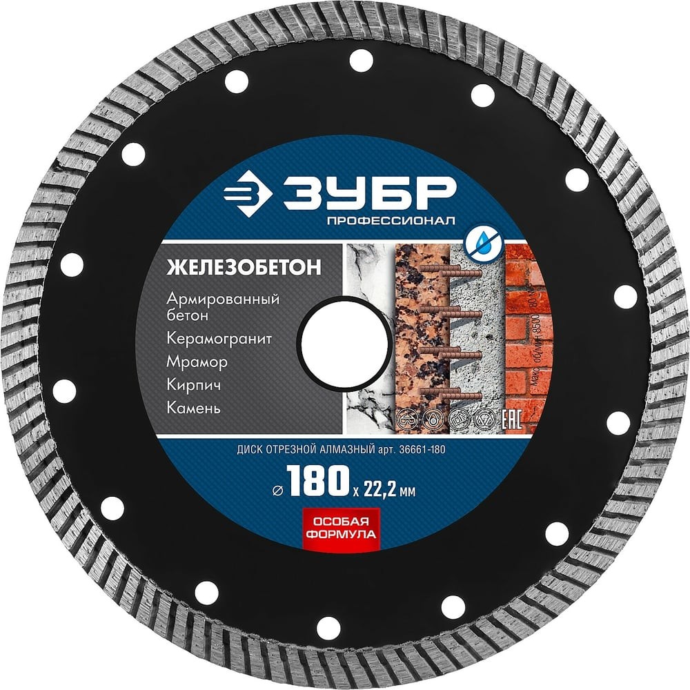 ЗУБР Железобетон, 180 мм, (22.2 мм, 10 х 2.6 мм), сегментированный алмазный диск, Профессионал (36661-180)