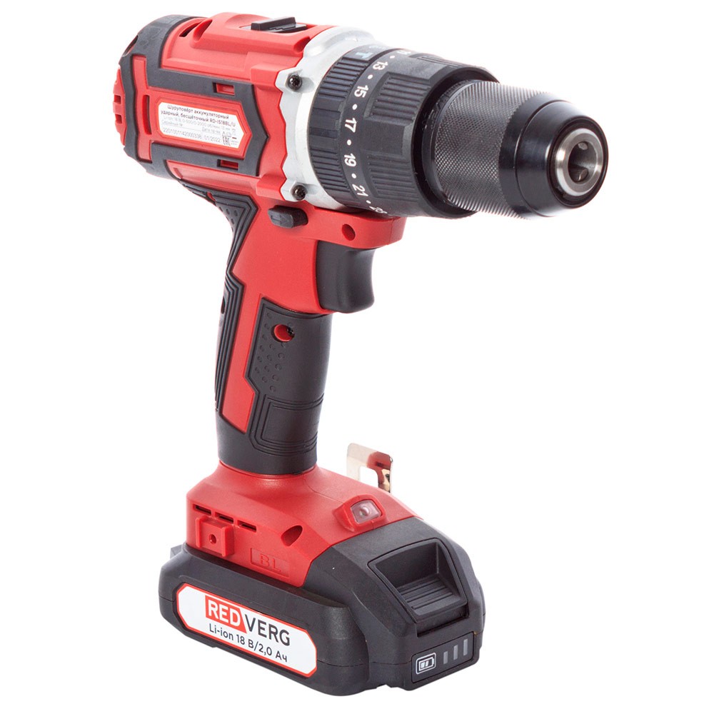 Аккумуляторная дрель-шуруповерт REDVERG RD-IS18BL/U подходит для вворачивания/выкручивания шурупов и нарезания резьбы, для безударного сверления металла, древесины, пластмассы и подобных материалов, а также для ударного сверления каменной кладки, кирпича и камня.