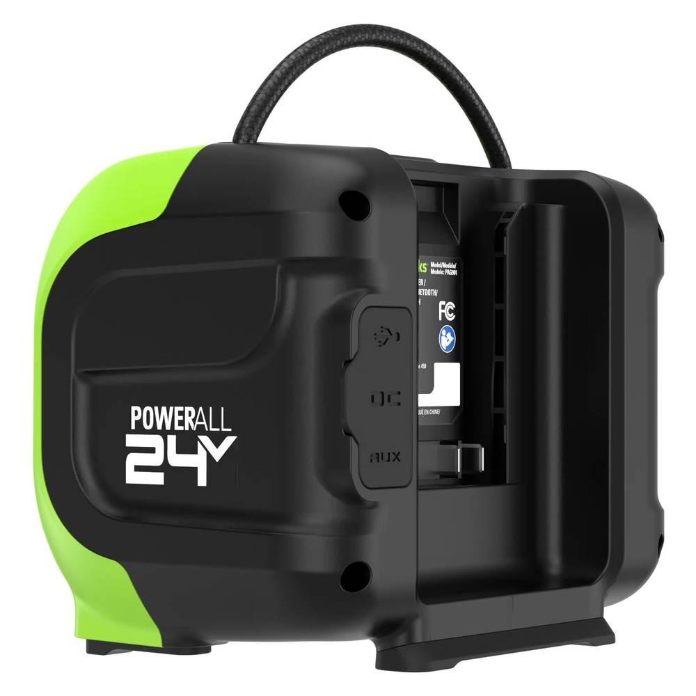 Аккумуляторная линейка Greenworks 24V Питание от АКБ Greenworks POWERALL 24V или от сети 110-240V с помощью адаптера Режим Powerbank Bluetooth 5.0 Режим TWS Разъем USB-C Разъем AUX (3,5мм) Компактные размеры и небольшой вес |