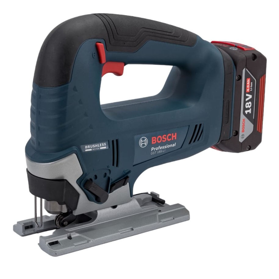 Аккумуляторный лобзик Bosch GST 185-LI (024) с мощным бесщёточным двигателем. Применяется для прямого и фигурного распила материалов. Подошва литая. Инструмент работает от литий-ионного аккумулятора, напряжением 18В. Максимальная частота ходов штока 3500 ход/мин. Ход пилки 26мм.Оснащен механизмом быстрой замены пилки. Подсветка рабочей зоны позволяет работать в условия с недостаточным освещением. 4-ступенчатый маятниковый ход позволяет выбирать между быстрым или чистым пропилом. Благодаря механизму наклона платформы можно выполнять распил под углом от 0 до 45 градусов. Поставляется в кейсе.