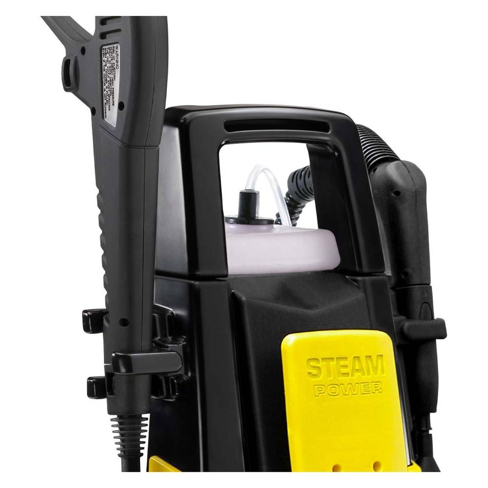 Встроенный парогенератор Очистка паром при температуре 120°C Мощный электродвигатель Встроенный бак для моющего средства Крепление пистолета на корпусе мойки Пистолет с блокировкой от случайного нажатия Колеса и ручка для транспортировки Компактный размер и вес |