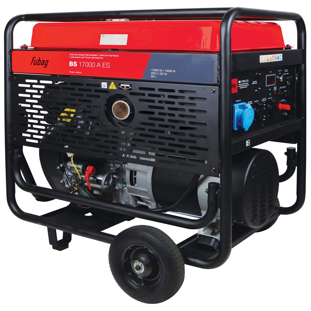<div class="catalog-product-attributes__white-gradient"></div> Бензиновый генератор Fubag BS 17000 А ES для работы с большим количеством высоконагруженных однофазных потребителей. Имеет V-образный 2-х цилиндровый OHV-двигатель. Синхронный альтернатор с медными обмотками ротора и статора оснащен системой регулировки выходного напряжения (AVR). Сварной топливный бак объемом 60л обеспечит до 8 часов работы без дозаправки на 75% нагрузки и оснащенный указателем уровня топлива и фильтром-сеткой. |