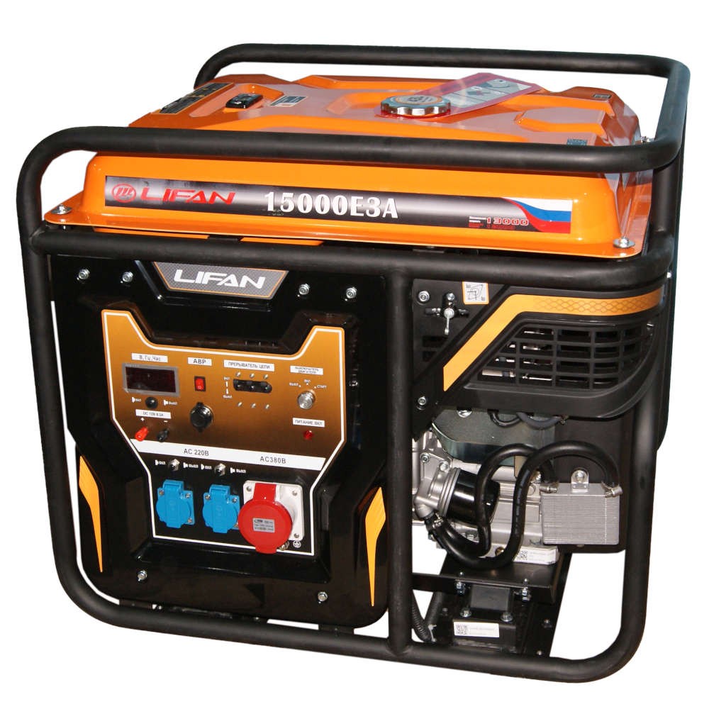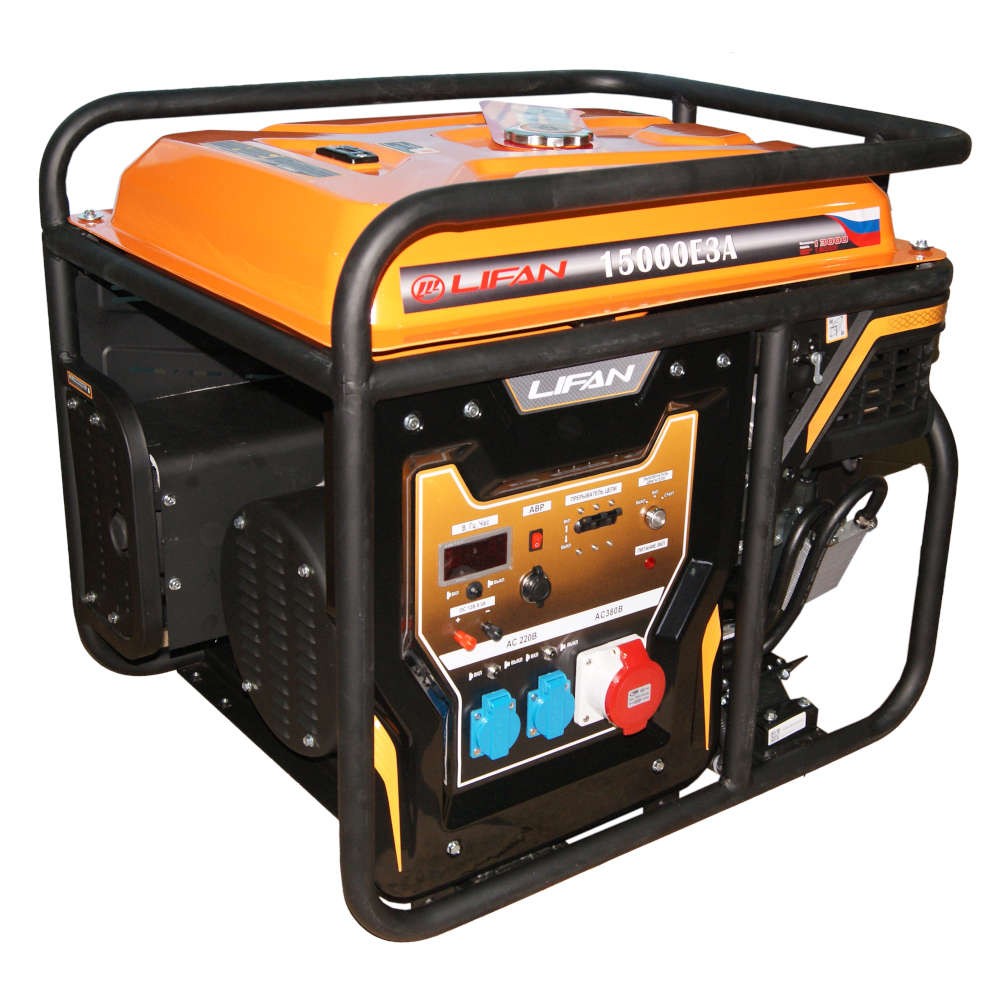 <div class="catalog-product-attributes__white-gradient"></div> <p class="product-page__description-paragraph"> Бензиновый генератор LIFAN 15000E3A - мощный одно-/трехфазный генератор, применяемый в качестве источника электроэнергии на дорожных и строительных работах, промышленных объектах, на личных загородных участках, в автомастерских, магазинах и в других подобных областях. Исключительная надежность, устойчивость к поломкам и высочайшая производительность делают данную модель одной из лучших на рынке в своем классе электрогенераторов. Силовым узлом данной модели является 2-хцилиндровый двигатель 2V80 мощностью 29 л.с. Бензиновый генератор LIFAN 15000E3A обладает высокой мощностью в 15.0/13.0 кВт, длительным временем непрерывной работы, имеет выходное напряжение 220В и 380В. Установка комплектуется колесами 10" для удобства транспортировки и перемещения, электрическим стартером, аккумулятором 12В/36Ач, вольтметром, индикатором уровня топлива, системой контроля уровня масла, а также системой защиты от пер |