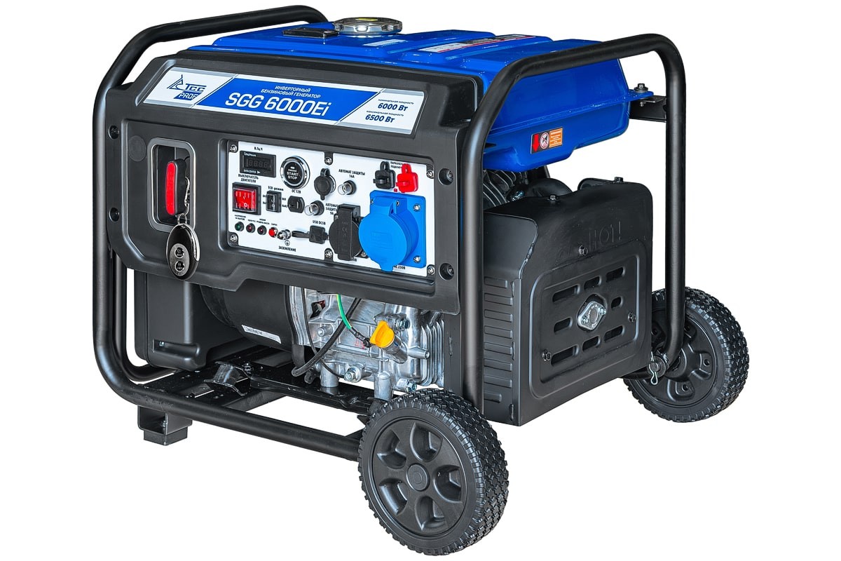 <div class="catalog-product-attributes__white-gradient"></div> <noindex>Бензогенератор инверторный SGG 6000Ei с электростартом, коннектором для подключения АВР, укомплектован колёсным комплектом для удобства перемещения.Благодаря использованию в этой модели инверторного преобразователя, на выходе получается стабильный ток, без каких-либо скачков, генератор способен регулировать работу двигателя в зависимости от нагрузки: к примеру, если нагрузка составляет половину от выходной мощности, то и мощность двигателя снижается вдвое; это даёт значительную экономию топлива. Инверторные модели получаются более лёгкими и компактными, чем традиционные генераторы.Благодаря двигателю, специально разработанному под инверторный генератор и особенной конструкции корпуса, удалось значительно понизить уровень шума. Режим ECO обеспечивает экономичный расход топлива, синхронный альтернатор с медными обмотками ротора и статора увеличивает ресурс двигателя. Выход 12 вольт позволяет подзарядить автомобильный аккумулятор в экстренно |