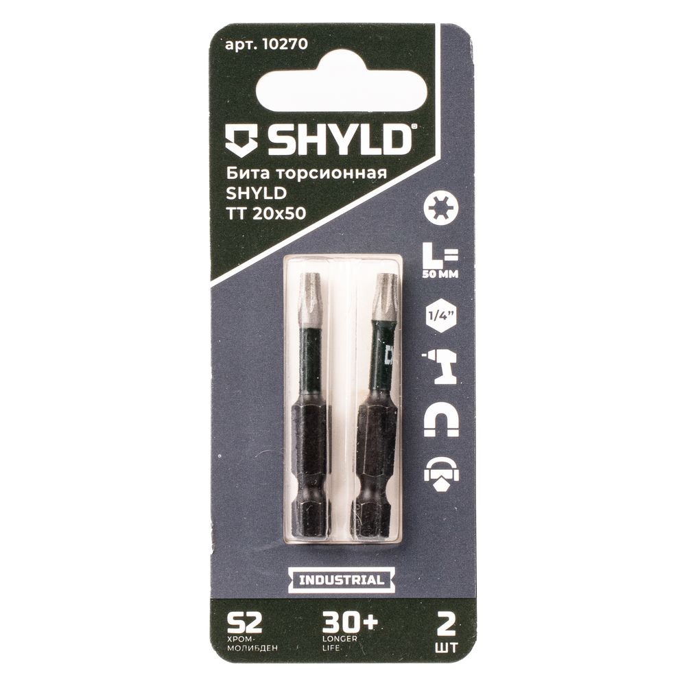 Бита SHYLD TT20х50мм 2шт (10270) - биты типа Torx Tamper хорошо передают крутящий момент, что исключает повреждение винта или заготовки. Торсионные ударные биты SHYLD DYNAMIC FLEX, выполненные из комплексно-легированной хромомолибденовой стали S2 – отличное решение для профессионального и промышленного использования в строительных и монтажных работах.